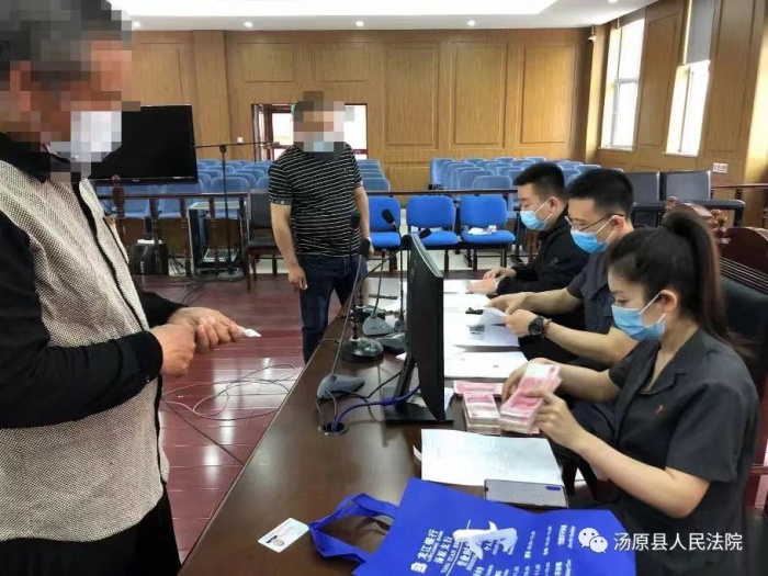 近日,汤原法院执行局干警将7.6万余元执行案款现场发放给申请执行人。在现场,11名申请执行人有序排队,前来领取各自执行到位的案款。