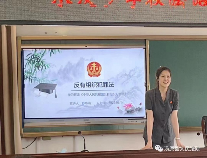 少年智则国智,少年富则国富,少年强则国强。近日,汤原县人民法院鹤立审判组法官助理、法治副校长孙玮鸿在永发、裕德中小学校开展“反有组织犯罪法”的法治专题宣讲课。