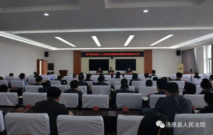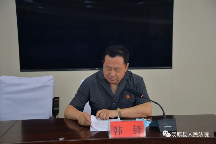 韩锋指出,省第十三次党代会,是在全省上下认真贯彻落实习近平总书记重要讲话重要指示批示精神和党中央决策部署、加快推进全面振兴全方位振兴、向第二个百年奋斗目标进军的关键时期,召开的一次十分重要的会议。全体干警要不断筑牢司法为民,公正司法理念,把深入学习贯彻落实黑龙江省第十三次党代会精神内化于心、外化于行,把党代会精神转化为工作能力,着力改进作风,提升审判质效,以优异成绩向党的二十大献礼。