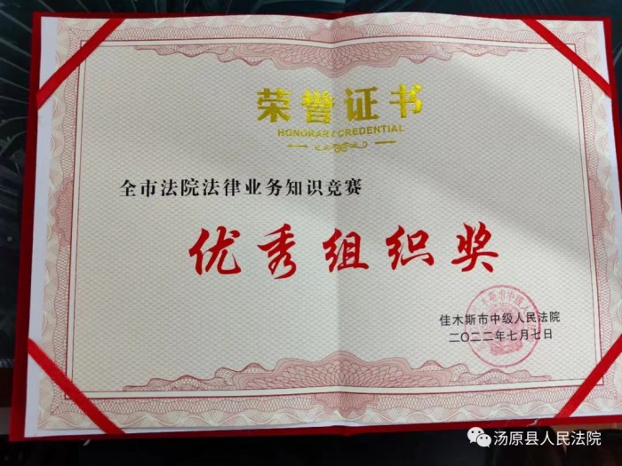 为进一步提升干警法律知识及业务能力水平,以赛促学、以学促用,扎实开展好“学习型法院”“学习型干警”创建行动,推动“能力作风建设年”活动走深走实。7月7日,汤原法院派出代表队积极参加全市法院法律业务知识竞赛。
