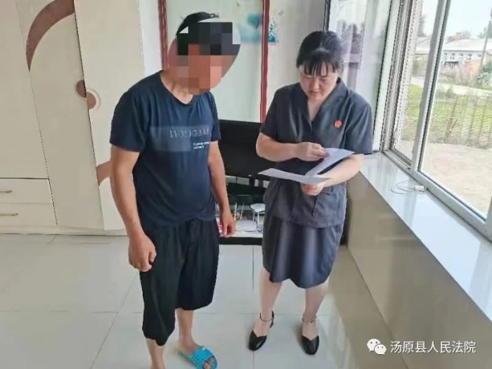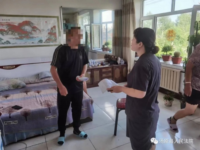 为积极开展为群众办实事实践活动,解决群众难题,彰显司法温情,7月5日至7日,汤原法院胜利法庭法官宗玲和法警王继章冒着烈日酷暑和倾盆大雨的天气,搁置繁杂的各类工作,将一个家庭的两起家事案件送至多位被告家门口。