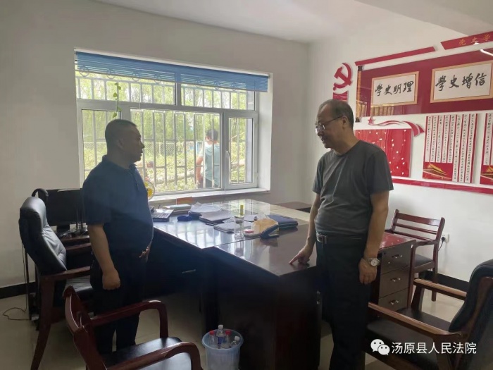 7月11日,汤原县纪委监委派驻县公安局纪检监察组组长霍兆刚一行先后到汤原法院胜利法庭、香兰法庭,对当前重点工作的开展及党风廉政建设情况进行督导调研。院党组成员、政治部主任杨明晨,办公室主任黄涛陪同。