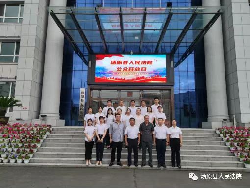 7月19日,汤原县人民法院举行“公众开放日”活动,汤原县政协秘书长徐立波同志及二十余位政协委员应邀走进法院,在党组成员、政治部主任杨明晨及党组成员、民事审判庭庭长吴越同志的陪同下,零距离体验审判活动,直观感受法治氛围。