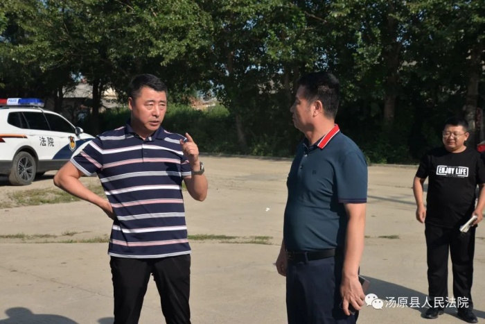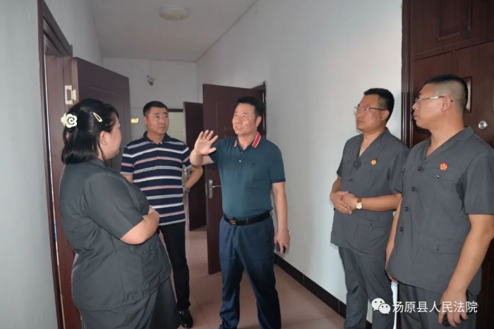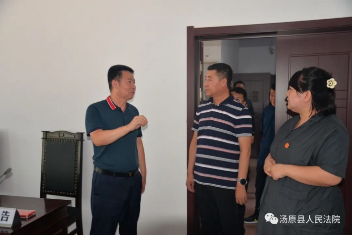 8月4日下午,省法院陪审办副主任付向成在佳木斯市中级人民法院民一庭庭长王成柏陪同下深入汤原法院鹤立审判组检查指导工作,汤原法院党组书记、院长石广玉,党组成员、民庭庭长吴越,鹤立审判组负责人陈宇超共同迎检。
