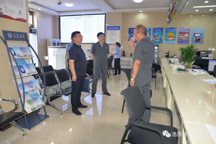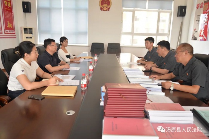 8月12日下午,佳木斯市中级人民法院能力作风建设领导小组办公室副主任卢铁亮及相关工作人员一行到汤原县人民法院督导检查“能力作风建设年”活动开展情况,院党组成员、副院长张启涛,党组成员、政治部主任杨明晨陪同。