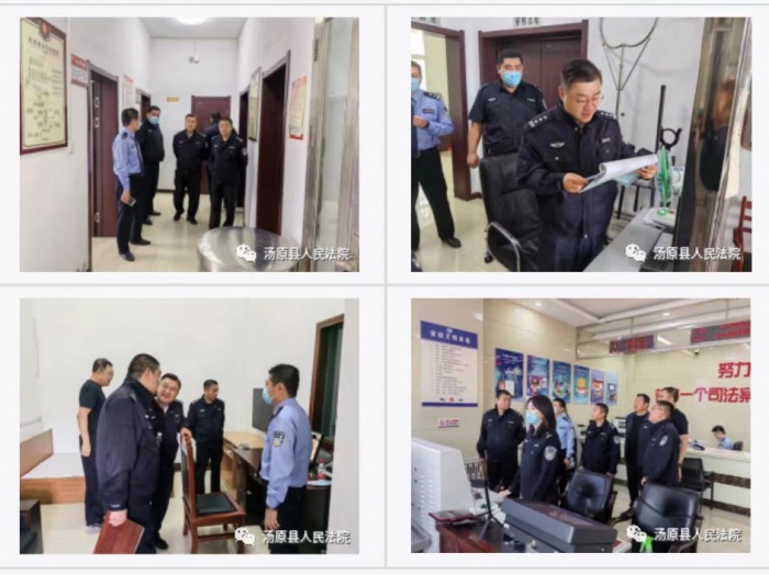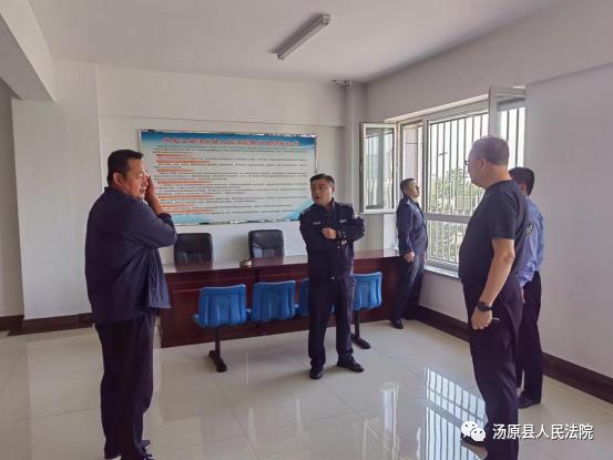 检查组一行先后到汤原法院胜利法庭和香兰法庭,对法庭人身安检、安检场所、安检设备、警务装备、外来人员登记、消杀记录等进行了详细检查。并在现场强调警务安全保障的重要性和关键性,对法庭存在不足进行了现行告知和整改意见。