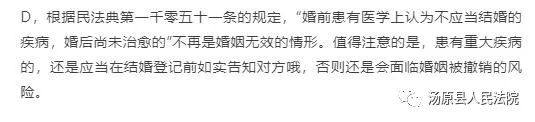 D.婚前患有医学上认为不应当结婚的疾病,婚后尚未治愈的。