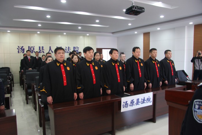 宣誓结束后,县委常委、政法委书记王河顺喜同志作了重要讲话。王河顺喜同志首先代表汤原县委对汤原县人民法院首批入额法官表示热烈祝贺。王河顺喜同志指出:人民法院是国家审判机关,肩负着宪法和法律赋予的神圣职责。法官宣誓是树立司法机关形象,加强法官队伍建设,增强法官职业使命感、责任感和荣誉感的一项很有意义的活动,是法官表示对国家忠诚,对人民的热爱,对法律的尊崇,对职责的坚守,并自觉接受法律和社会监督的一次公开郑重的承诺。王河顺喜同志希望汤原法院的全体法官,要牢记职责使命,增强“四个意识”,坚定理想信念,永葆人民法官的政治本色;要忠于宪法法律,忠于人民司法事业,增强维护国家安全、服务经济社会发展、维护社会和谐稳定的意识,公正司法,努力让人民群众在每一个司法案件中感受到公平正义;要恪守法官职业操守,强化道德担当,自觉抵制各种诱惑和干扰,一身正气,廉洁司法;要心系人民,服务群众,以实际行动践行司法为民。希望法院党组要加强对法官和干警的管理,规范权力行使,提高司法水平,为汤原县经济社会发展和法治建设做出更大的贡献。