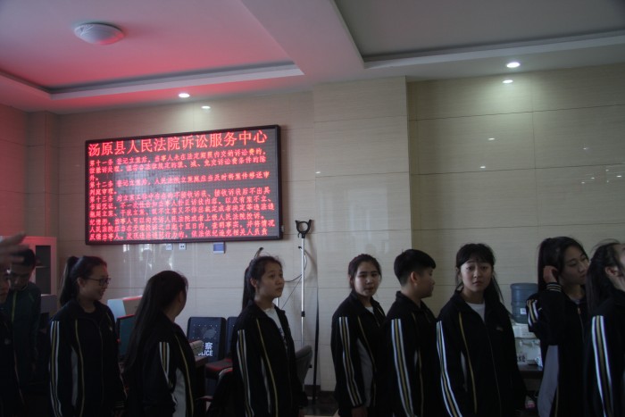 为提高青少年的法律意识和法制观念,提高他们知法、守法的自觉性,5月17日,汤原县法院举办了“法在身边—为成长护航”为主题的开放日活动,邀请汤原县职业高中60余名师生到法院参观,零距离感受庭审,亲自接触法官,感受阳光司法。法院党组成员、政工科长杨明晨、法警大队教导员余东、纪检委员张凝陪同参观。汤原电视台记者全程进行了跟踪采访。