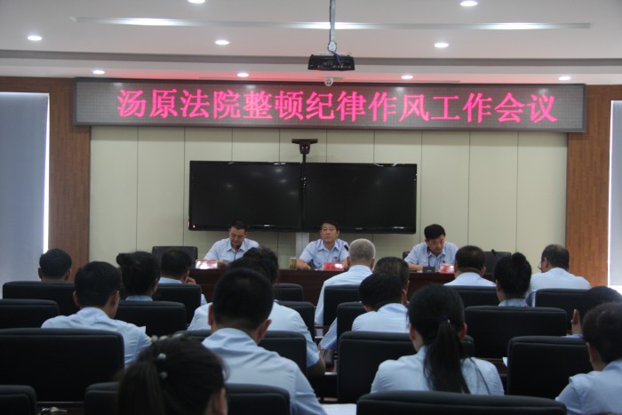 7月7日,汤原县法院整顿纪律作风工作会议在三楼会议室召开,会议由党组副书记、常务副院长滕东明主持,法院全体干警参加了会议。