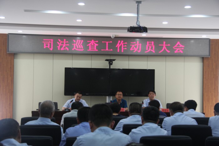 7月24日14时30分,佳木斯市中级人民法院对汤原法院司法巡查工作动员大会在汤原法院三楼会议室召开,市中级人民法院党组成员、纪检组长栾禹韬一行7人参加了动员大会。会议上汤原法院党组副书记、副院长滕东明主持,汤原法院全体干警参加了大会。
