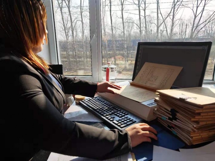 与此同时,书记员李菲对2019年结案卷宗做整理扫描,形成电子档案并完成归档工作。因法庭琐事多,她经常是忙里偷闲,争分夺秒的工作,她笑着说:“虽然书记员的工作很琐碎,但是很充实”。