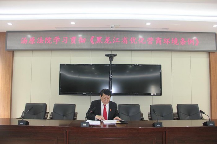 为深入贯彻省委省政府、市委市政府、县委县政府关于优化营商环境的重大部署和要求,推动全社会形成重塑营商新环境的良好氛围,3月22日,汤原法院举办《黑龙江省优化营商环境条例》专题讲座。党组书记、院长郑成章主持会议并发表重要讲话,全体干警参加学习。