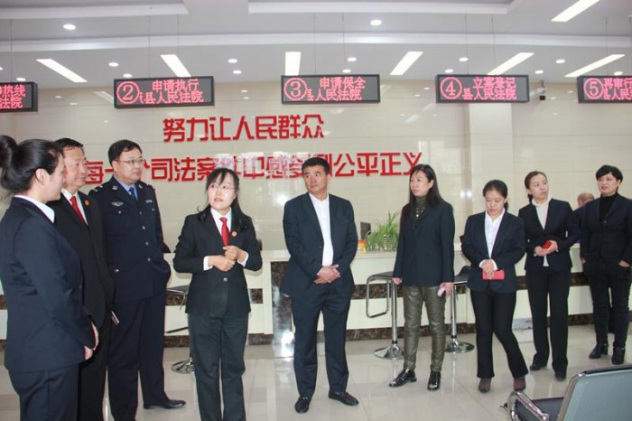 在诉讼服务中心,参观人员感受到方便快捷的诉讼服务;在科技法庭,大家坐上了期待已久的审判席,纷纷合影留念;在执行指挥中心,大家感叹现代科技手段在执行工作中的运用,提高了执行的工作效率;在图书室和荣誉室,大家对法院精神文明建设做出了肯定,体会到法院文化建设的浓厚氛围。