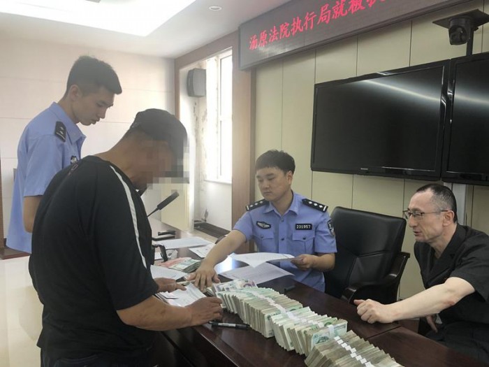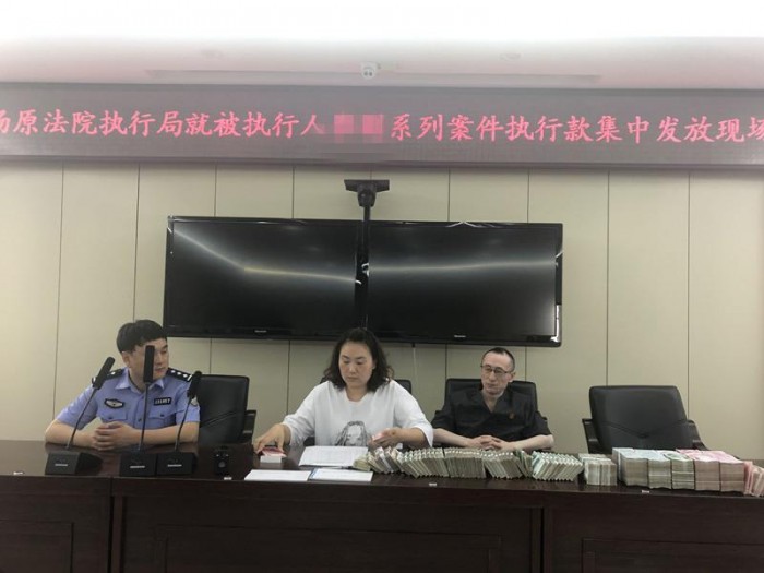 为了让法律判决不被沦为“一纸空文”,依法保障胜诉当事人的合法权益得以实现,解决执行重大疑难案件,化解矛盾纠纷,2019年7月18日上午,汤原县人民法院执行局就被执行人李某民间借贷纠纷系列案件,在执行局局长林杉的主持下,在三楼会议室对执行款进行了集中发放。