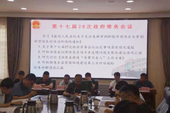 7月22日,汤原县人民政府第十七届28次政府常务会议在县政府常务会议室举行。会议由县长徐凤军主持,县政府其他领导及行政机关主要负责人50余人参加了会议。受法院党组的指派,党组成员、政工科长杨明晨在会前为全体与会人员讲解了《最高人民法院关于充分发挥审判职能作用为企业家创新营造良好法治环境的通知》(以下简称《通知》)。