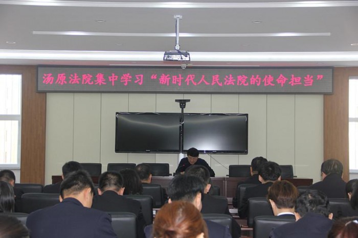 为深入推进“不忘初心、牢记使命”主题教育,引导干警坚持以习近平新时代中国特色社会主义思想武装头脑,指导实践,推动工作,11月1日上午,汤原县人民法院开展“不忘初心、牢记使命”主题教育专题党课。院党组书记、院长郑成章为全院干警作《新时代人民法院的使命担当》专题党课。