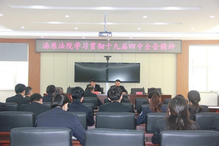 根据县委“不忘初心、牢记使命”主题教育活动安排,结合法院主题教育活动方案,11 月15日下午,汤原法院召开专题党课,深入学习贯彻十九届四中全会精神。