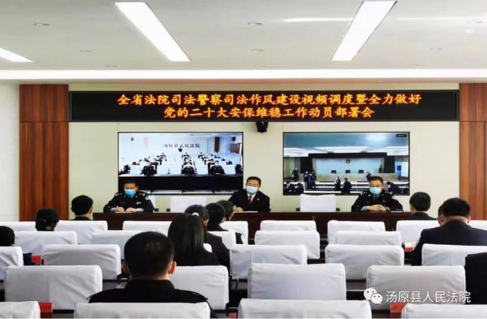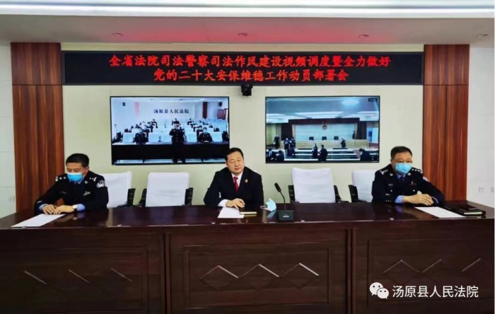 5月18日下午,省高院召开全省法院司法警察司法作风问题建设视频调度暨全力做好党的二十大安保维稳工作动员部署视频调度会,省法院法警总队长金兆墀主持会议,通报了全省法院司法警察司法作风专项视频督查情况,省法院党组成员、副院长王启胜做了重要讲话,就进一步加强全省法院司法警察司法作风建设提出工作要求,并对做好党的“二十大”安全防范工作进行动员部署。