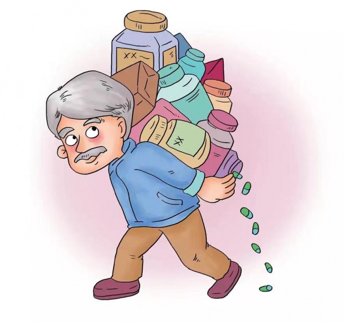 有人觉得年纪大了,应该补补身体。于是亲朋好友送,自己买,保健品越吃越多,结果造成过量服用,不但增加胃肠负担,还引发毒性反应。例如我们常见的人参,肯定是好东西,但并非什么体质的人都能吃。吃得不对的话,会引起发热上火烦躁不安、血压升高。对于长期酗酒的人,可能酒精已经对肝脏造成不良影响,这时如果服用深海鱼油,就可能使肝功能受损。部分滋补保健品应当按疗程服用,否则很容易营养过剩或产生副作用。