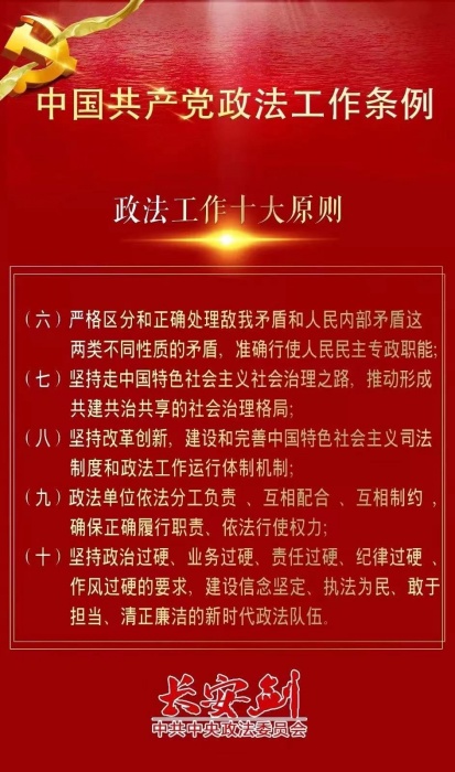 (二)确立政法工作的政治立场、政治方向、政治原则、政治道路,严明政治纪律和政治规矩,为政法工作科学发展提供政治保证;