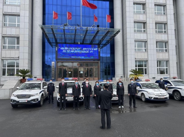 汤原法院共十五人参加仪式,出动警车六辆。在宣布“雷霆2022”汤原法院执行行动攻坚冲刺仪式正式启动后,参加仪式的全体干警精神抖擞,在上级领导的动员指挥下,集中出击,气势如虹。
