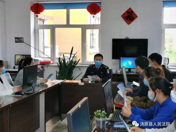 为进一步将我为群众办实事落实到工作常态化中去,近日,汤原法院法警大队大队长黄涛、教导员孙彬、司法警察唐宏宇以社区网格员的身份来到华胜社区、林业社区、哈肇社区,宣传环境保护常识,并为社区工作人员及居民群众讲授人民法院开展安全检查工作的重要性。