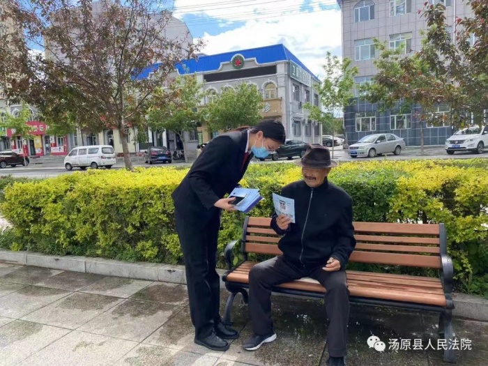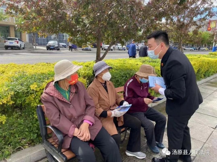 为维护老年人合法权益,打击整治养老诈骗违法犯罪行为。5月26日,汤原县人民法院党组成员、政治部主任杨明晨,刑庭负责人王新平带领刑事审判庭全体干警在汤原县老年活动中心开展了老年人防诈骗宣传活动,进一步提高我县老年人的反诈防骗意识,用实际行动守护好老年人的“钱袋子”。