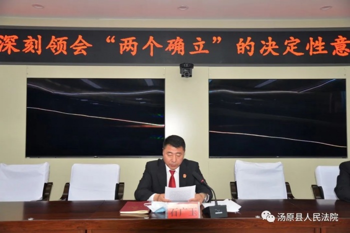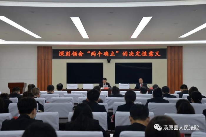 为深入开展“深刻领悟‘两个确立’决定性意义坚决做到‘两个维护’”主题教育,贯彻落实“能力作风建设年”活动要求,引导干警领悟思想伟力,增强道路自信。5月30日,汤原县人民法院党组书记、院长石广玉为全院干警讲授专题党课。