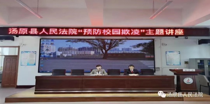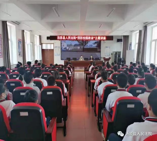 为积极预防青少年犯罪,增强老师和学生法治观念和遵法守法意识,守护学生身心健康,杜绝校园欺凌事件发生,2022年6月2日,汤原县人民法院审管办主任许晓明切实履行汤原县第一中学法治副校长职责,为学生们送上了一堂预防校园欺凌的主题讲座。